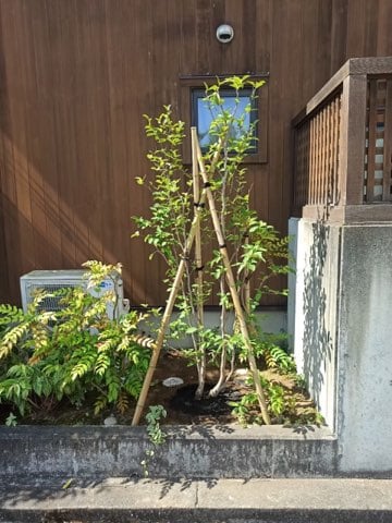 今日は節分!本来なら2月3日(立春の前日)なのですが、今年は124日ぶりに2月2日が節分の日になっているそうです!なぜかと調べているとなんやら難しい?笑 地球が太陽を1周する時間は356日ぴったりではなく、6時間弱長い。なので毎年少しずつ地球の位置がずれ、立春も2月4日になったり3日になったりするそうです!ん~細かいんですね!(;゚Д゚)今年の方向は、南南東。南南東を向いて恵方巻をかじってください!お話しては駄目ですよ( *´艸`) さて、今日は富山市のお客様のご自宅にある、シマトネリコの支柱新設作業をご紹介します!