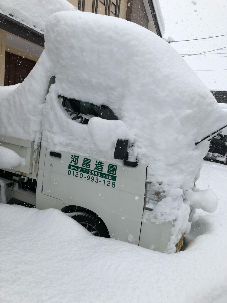 連休前の大雪から止まることを知らない雪…(;゚Д゚)みなさん、大丈夫でしたか⁇帰宅するのに何時間もかかった方、立往生で家にたどり着けなかった方。本当にお疲れさまでした。35年ぶりの大雪。しばらく雪の少ない富山をなめていました…。ごめんなさい…。河畠造園では除雪作業の毎日m(__)m夜中に出動し、通勤通学の前に作業を終わらせると言うハードなスケジュール。お疲れ様です。その作業のおかげで、通勤や通学が出来ているので本当に感謝でいっぱいです! そして…事務所に行くと大量の雪‼お昼からは運動がてら除雪(^^)/除雪時にはお向かいの瓦屋さんがお手伝いして下さり、人の温かさを感じる1日でした(*^^*)私も、助けてもらった分、どこかでお返ししなくては(*^-^*)