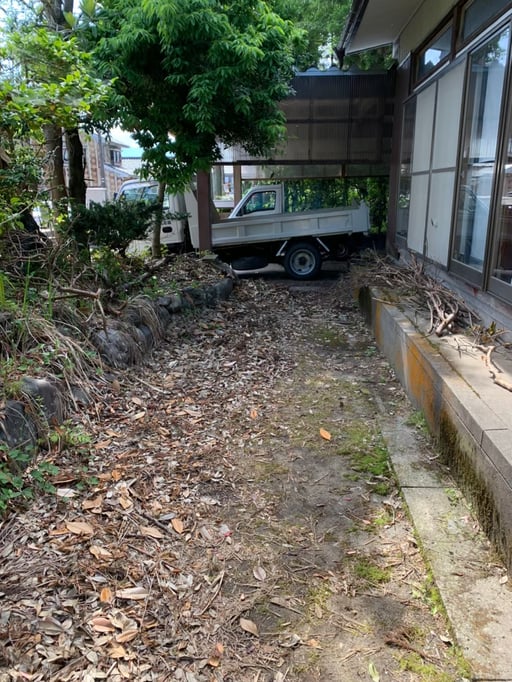 家の吹き溜まりや路地に溜まっていた枝葉も回収!家の周りがすっきりしました(*^-^*)