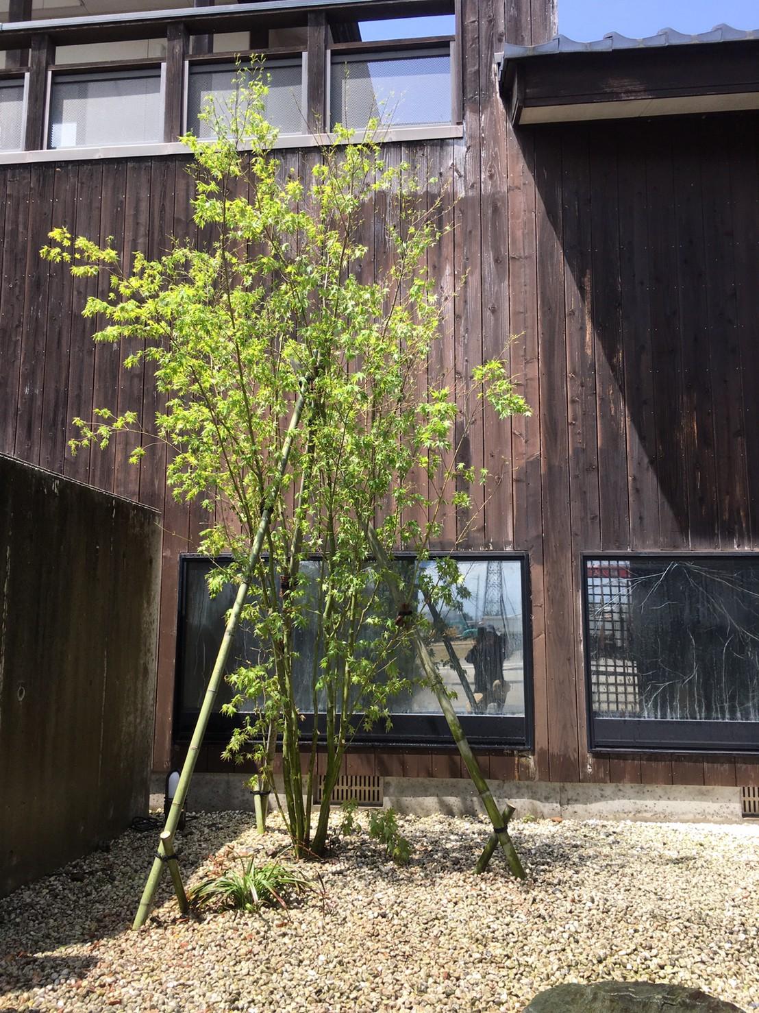 もともと植わっていたモミジを抜根して、新たに植栽しました。和モダンな建物に明るい緑が映えます。