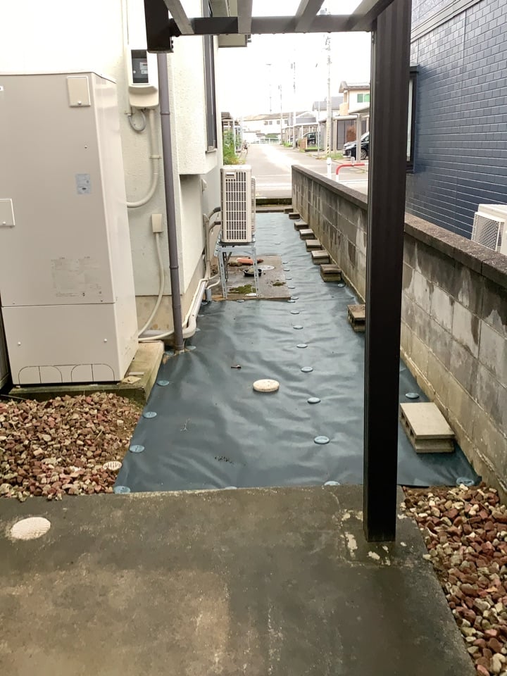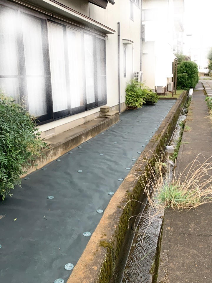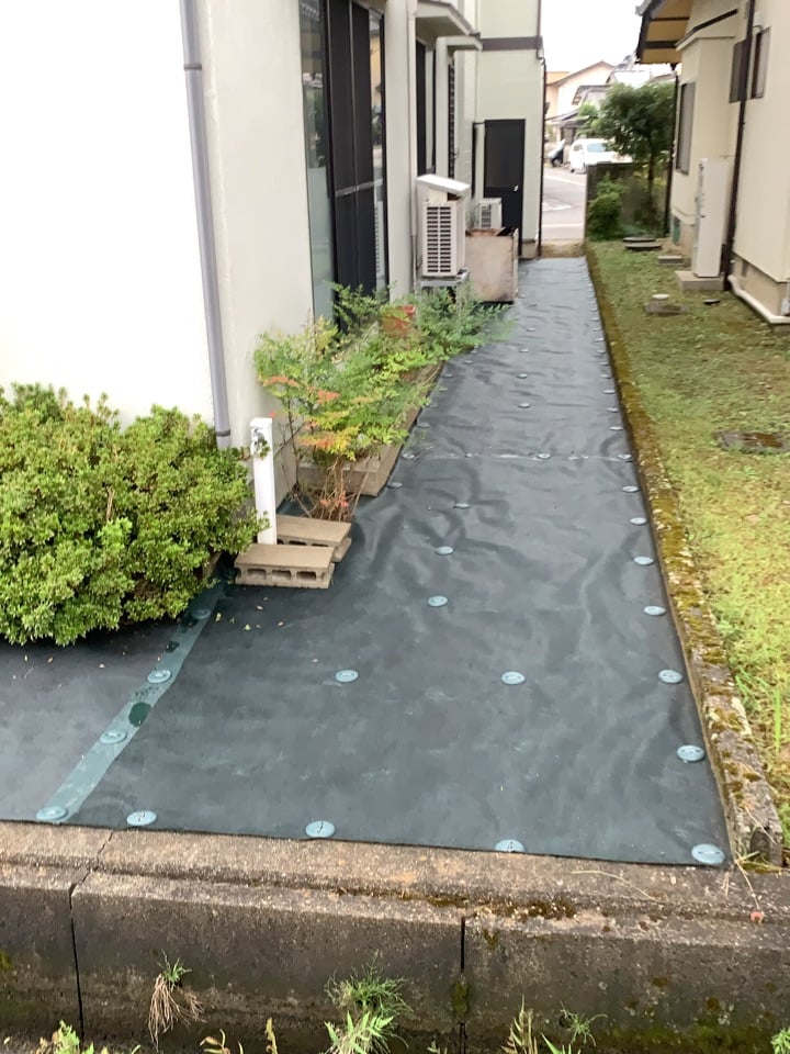 草刈をして、防草シートを敷きました。作業後にはとても綺麗になったと喜んでいただけました(^^)