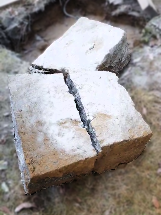 ドリルであけた穴にセリ矢という道具を差し込み、ハンマーで叩いていきます。