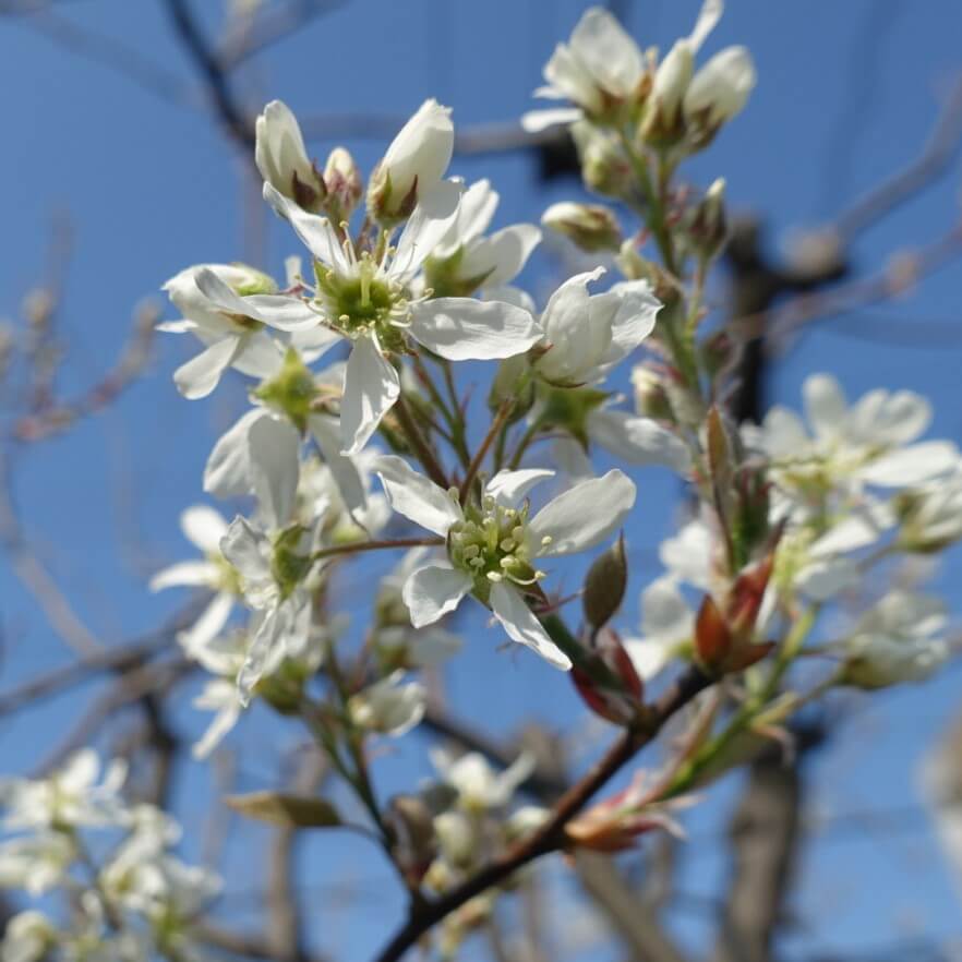 春には桜に似た白い花が房状に咲き、初夏には小さな赤紫色の実をつけるジューンベリー。冬にお手入れをして、春に綺麗な姿を見せてくれるのが楽しみですね♪